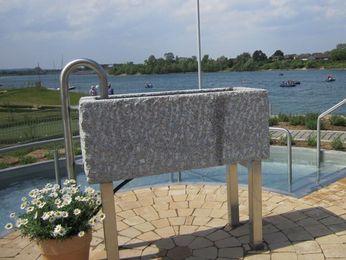 Probieren Sie die Wassertretanlage aus, regen den Kreislauf mit einem Armbad an, oder erfrischen sich durch einen Wasserguss.