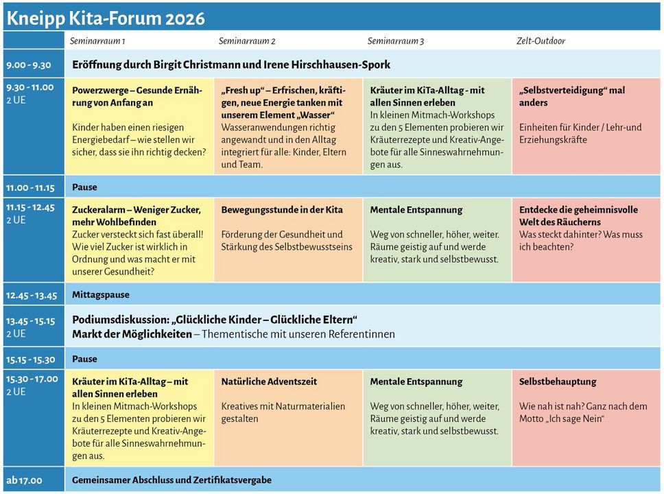 Wir frischen unser Wissen um die Grundlagen der Kneippschen Wasseranwendungen auf und motivieren zur Umsetzung auch bei den Eltern und dem Team.