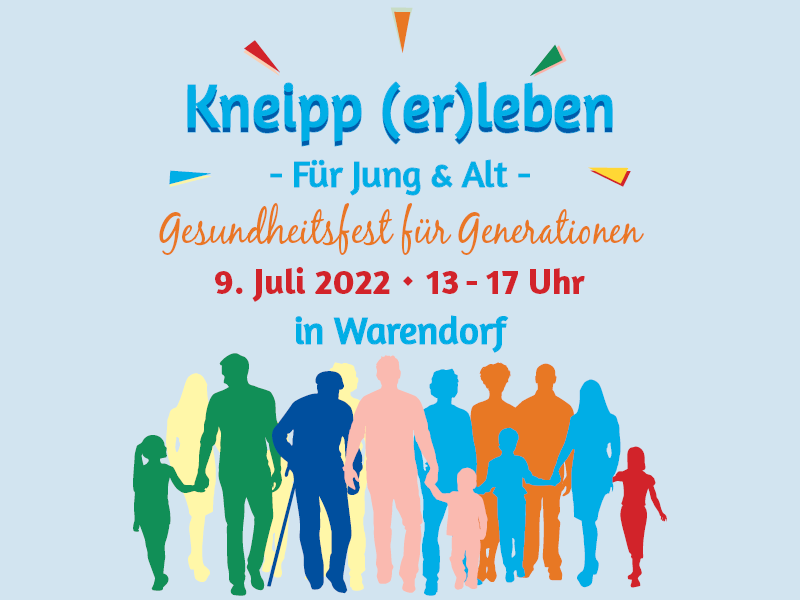 Wir laden alle herzlich zu unserem Kneipp-Gesundheitsfest für Generationen in Warendorf ein. Jung & Alt, Groß & Klein – Kommen Sie vorbei und erleben das Kneipp-Gesundheitskonzept live vor Ort und in Geselligkeit.