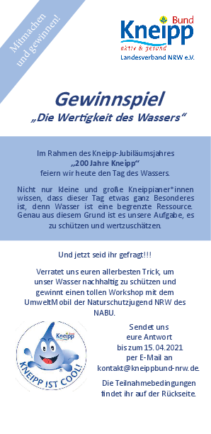 Dieser Tag steht einmal im Jahr unter einem wechselnden Motto. Die Wertigkeit des Wassers, so heißt es in unserem Jubiläumsjahr 2021.